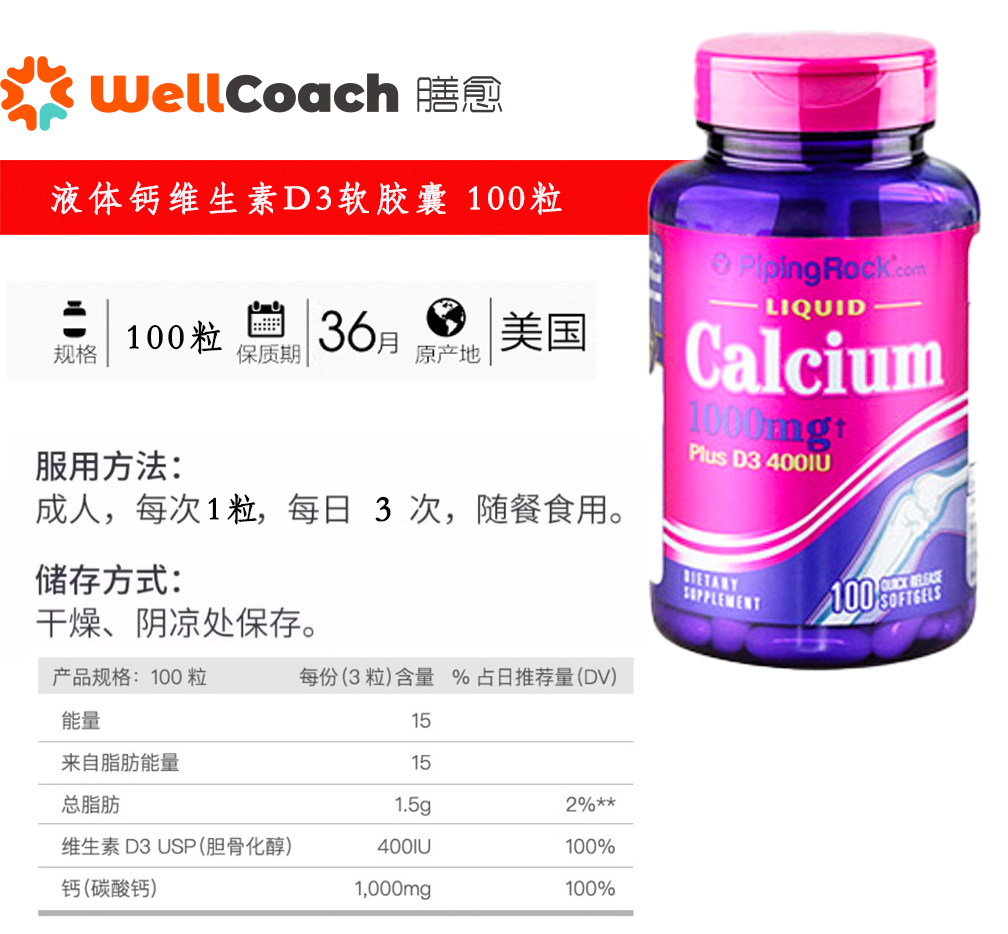 液体钙维生素D3软胶囊 100粒