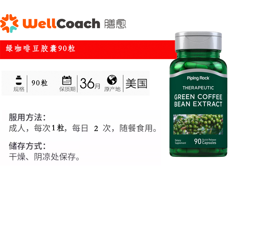 【美国直邮】PipingRock绿咖啡豆胶囊90粒