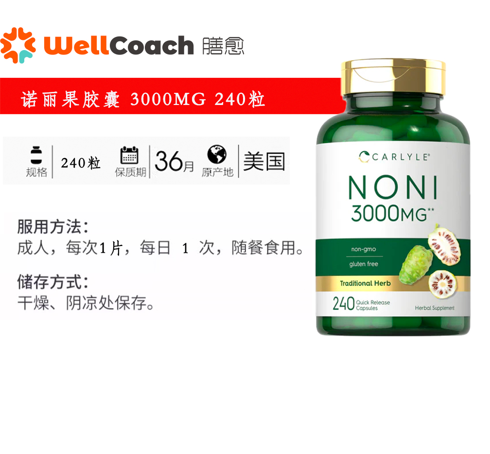 【美国直邮】诺丽果胶囊 3000mg 240粒