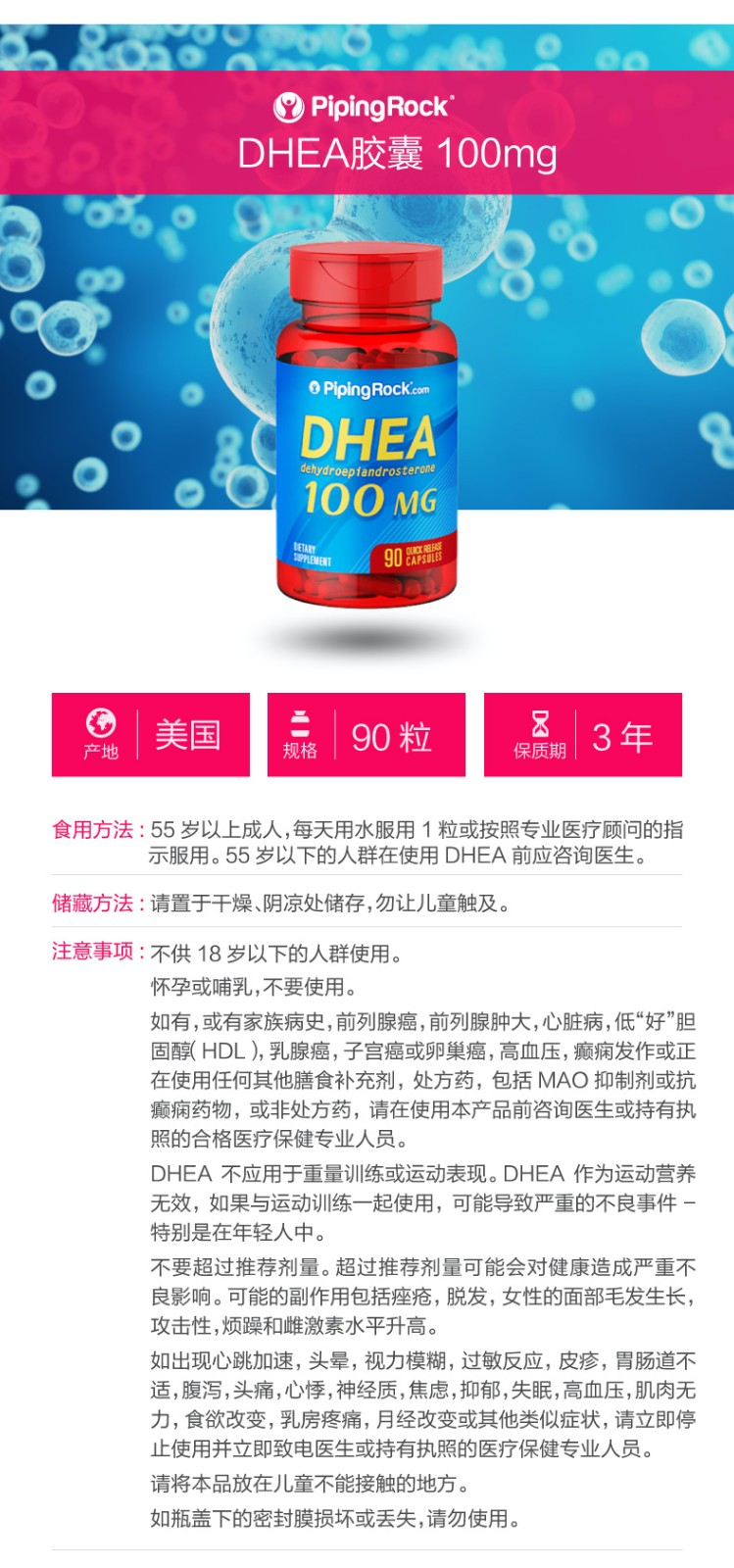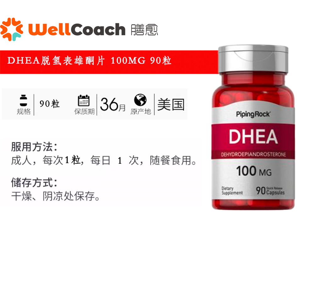 【美国直邮】DHEA脱氢表雄酮片 100mg 90粒