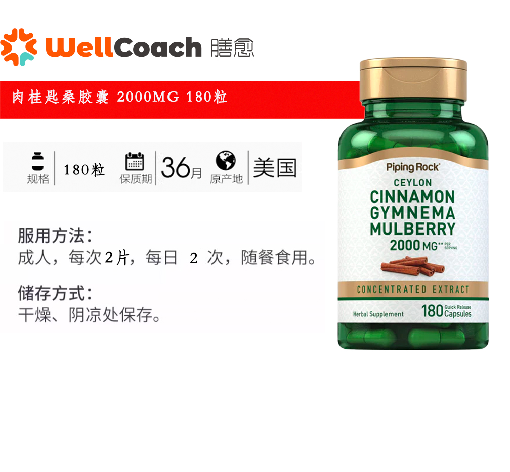 【美国直邮】肉桂匙桑胶囊 2000mg 180粒
