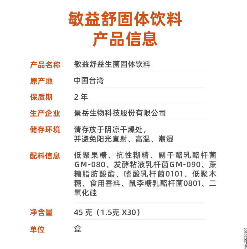 益逢人敏益舒益生菌固体饮料 1.5g*30包/盒