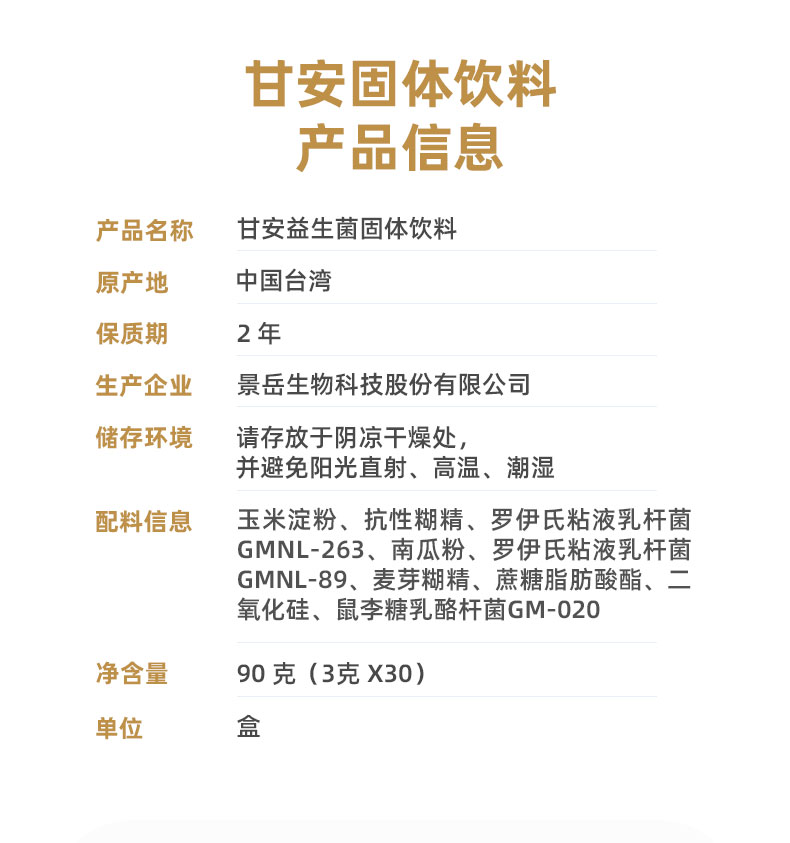 益逢人甘安益生菌固体饮料 3g*30包/盒