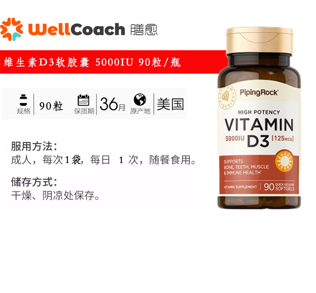 维生素D3软胶囊 5000IU 90粒/瓶