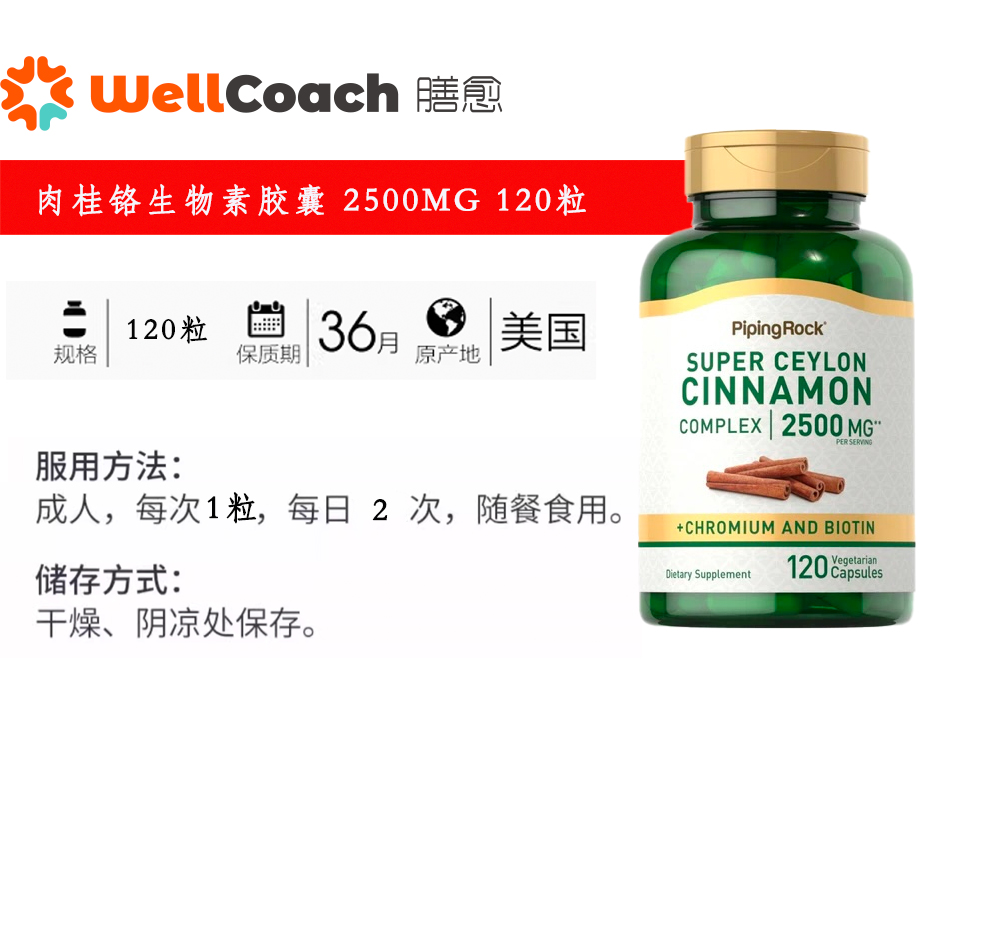 【美国直邮】肉桂铬生物素胶囊 2500MG 120粒