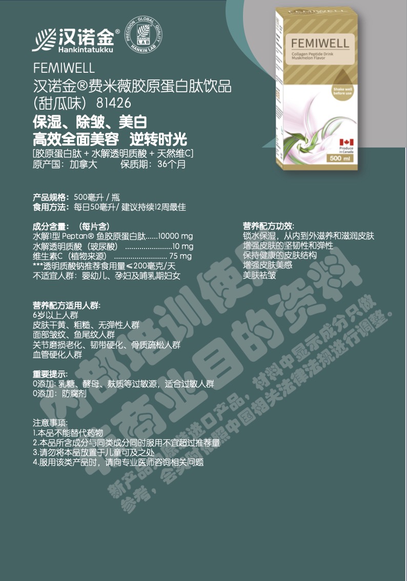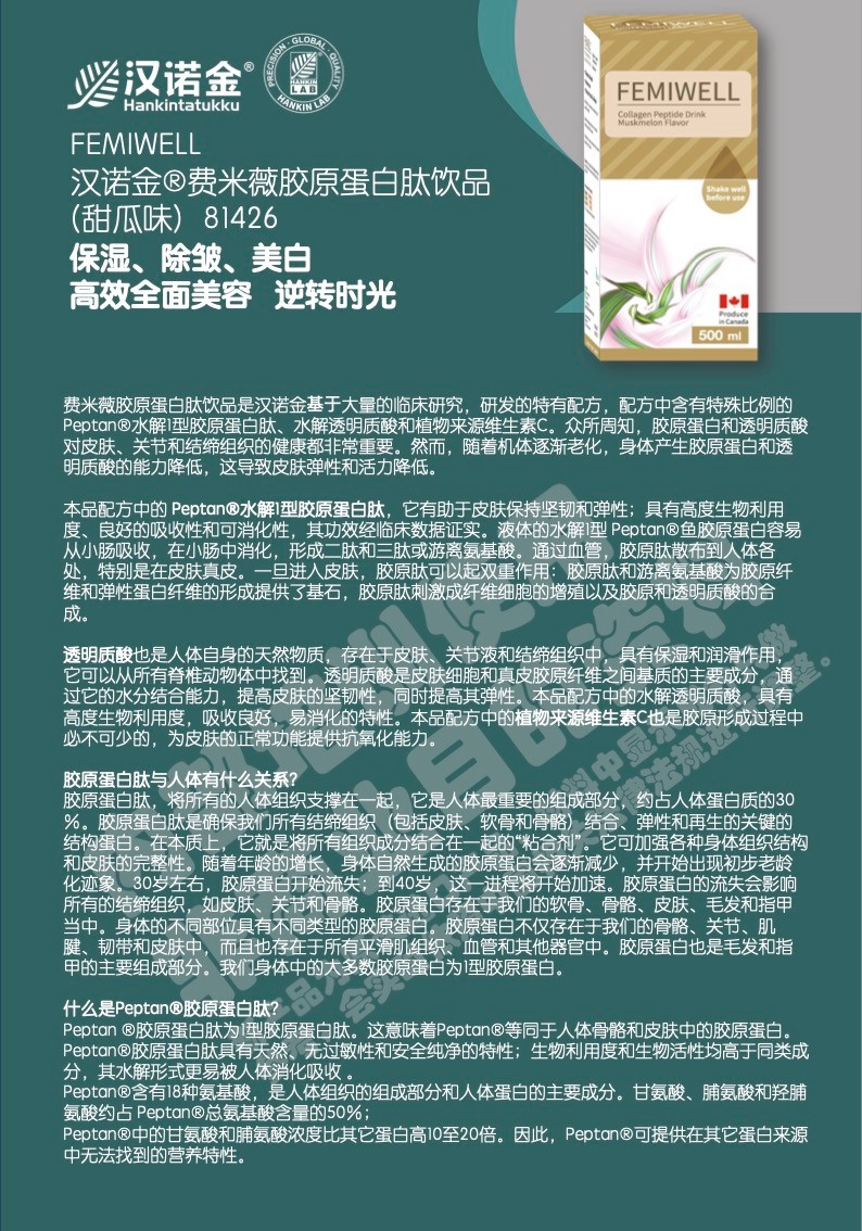 汉诺金胶原蛋白肽饮品(甜瓜味)500毫升/瓶