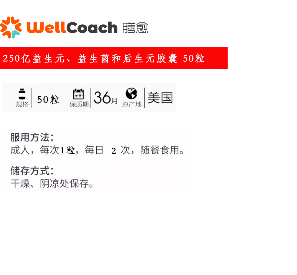 250亿益生元、益生菌和后生元胶囊 50粒
