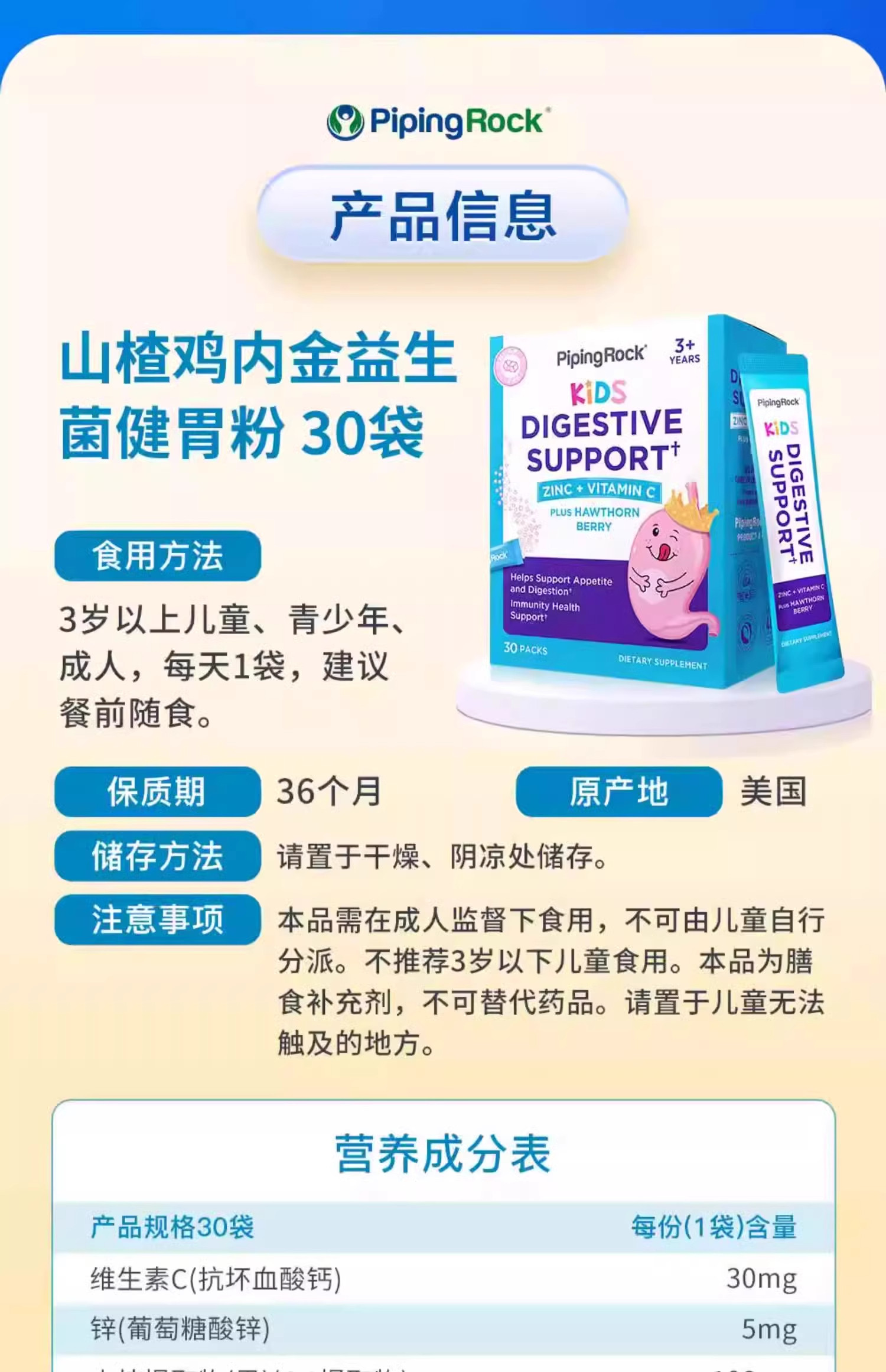 儿童山楂鸡内金益生菌粉 30袋/盒