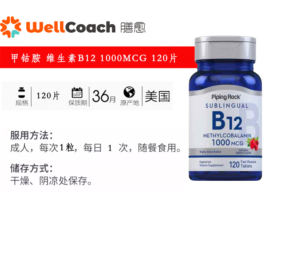 【美国直邮】甲钴胺 维生素B12 1000mcg 120片