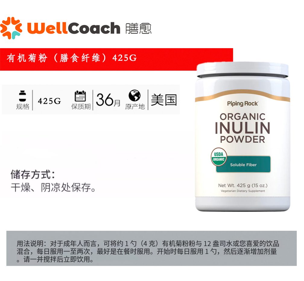 【美国直邮】有机菊粉(膳食纤维)425g