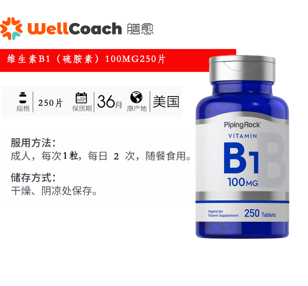 【美国直邮】PiPingRock维生素B1(硫胺素)100mg250片