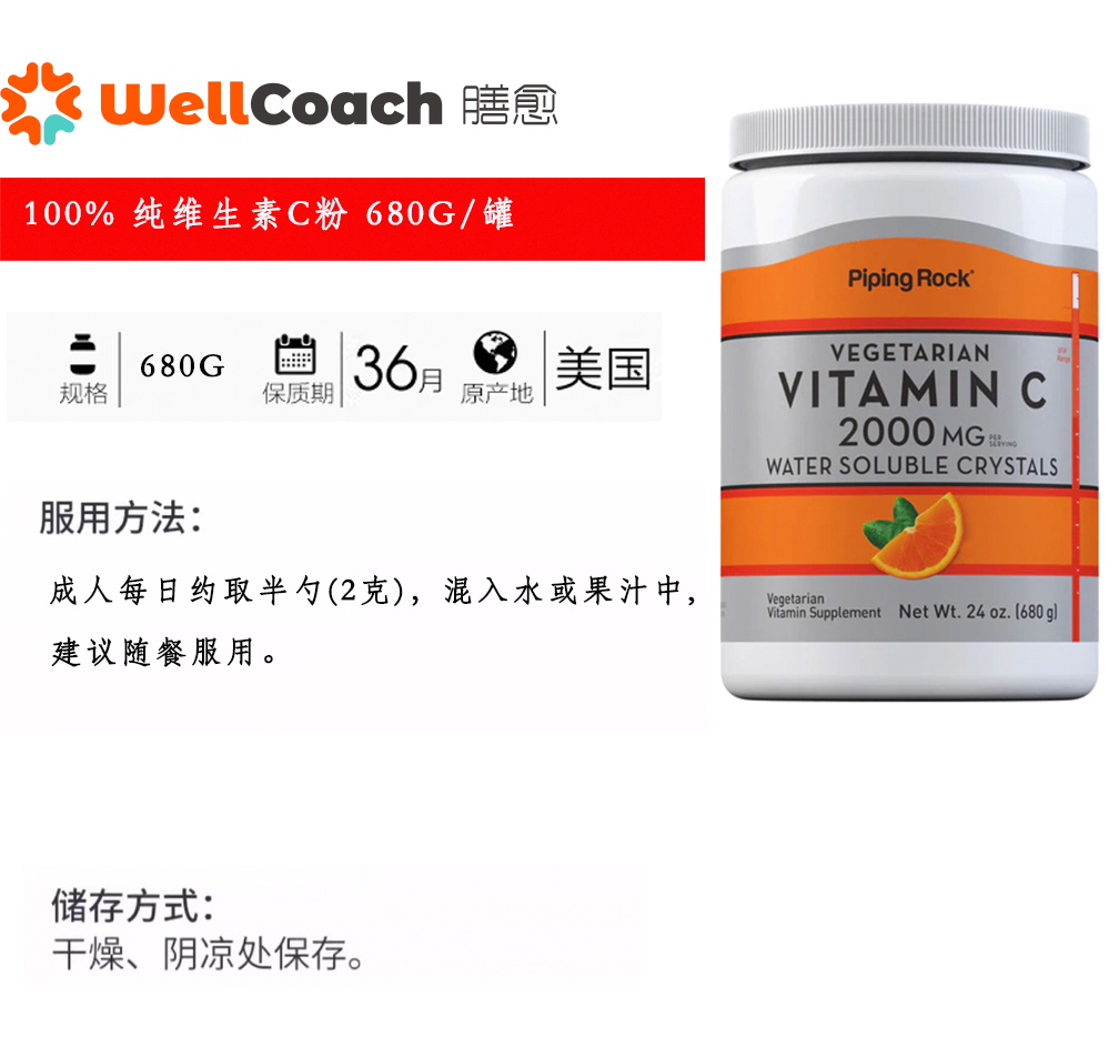 【美国直邮】100% 纯维生素C粉 680g/罐
