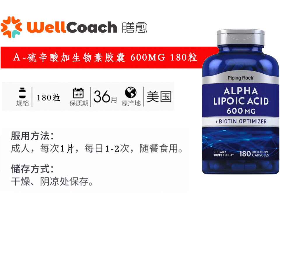 【美国直邮】α-硫辛酸加生物素胶囊 600mg 180粒