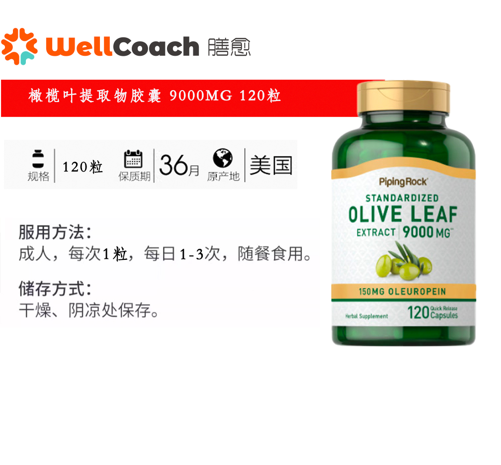 【美国直邮】橄榄叶提取物胶囊 9000mg 120粒