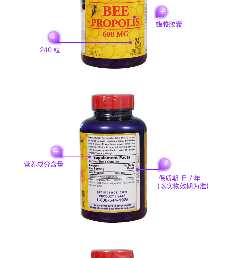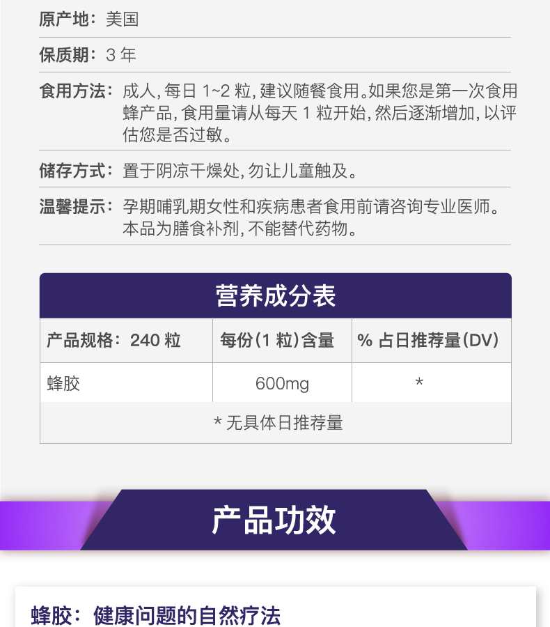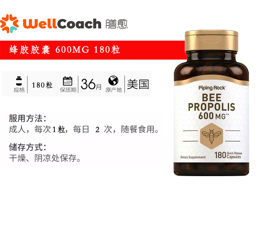 【美国直邮】蜂胶胶囊 600mg 180粒