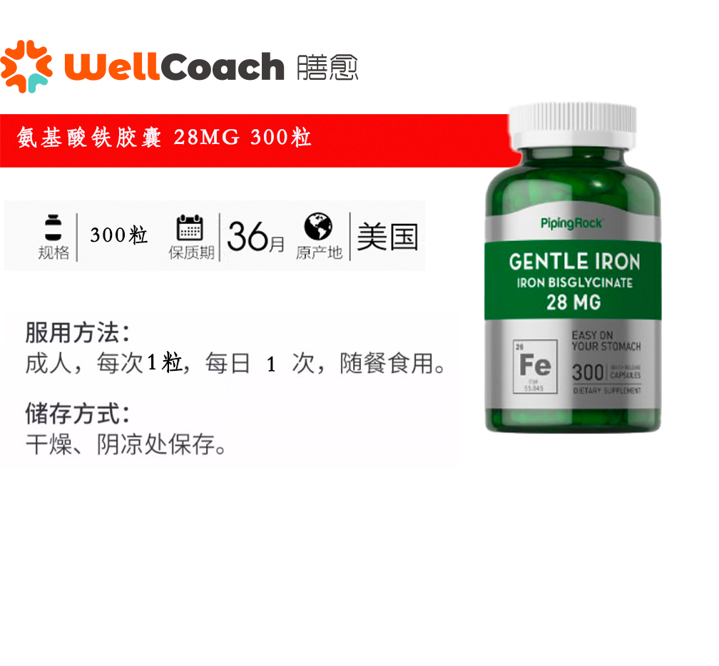 【美国直邮】氨基酸铁胶囊 28mg 300粒