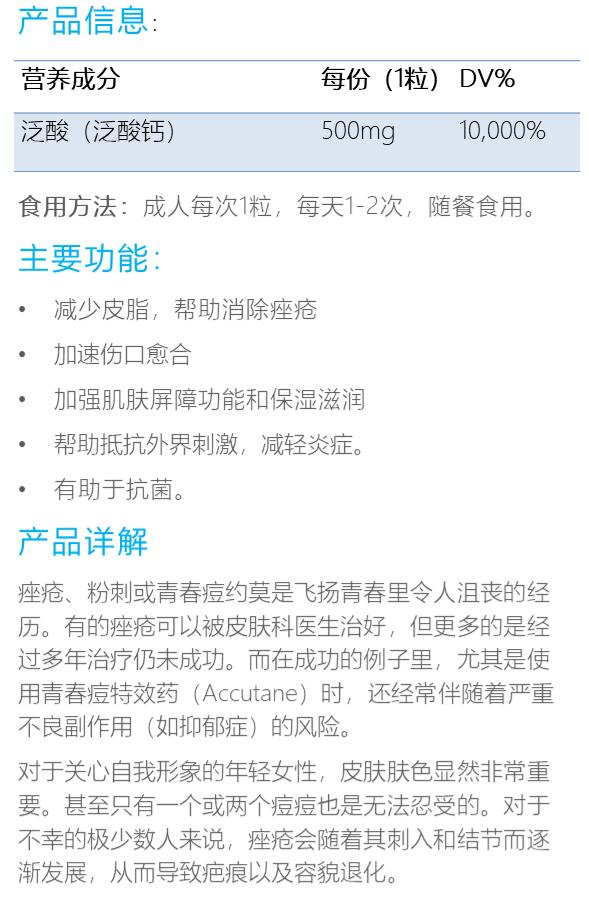 【美国直邮】泛酸胶囊500mg 60粒